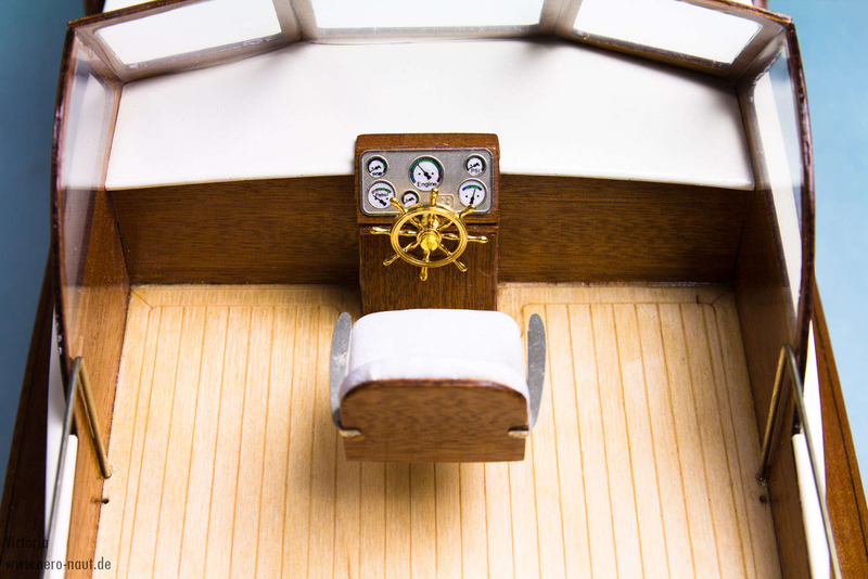 Alle Holzteile sind passgenau mit  Laser geschnitten. Dank der guten Vorbereitung der Teile kann das Modell in ca. 12 Stunden plus Trockenzeiten für Leim und Grundierung gebaut werden. Anschließend wird dann das Boot noch mit Bootslack lackiert.