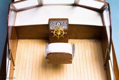 Eine traumhafte Motoryacht aus der Mitte des vorigen Jahrhunderts. Das Modell hat kein Original als Vorbild, aber gewisse Ähnlichkeit mit Booten aus der Zeit von 1950 bis 1960. Der Maßstab beträgt ca. 1:20. Das Modell ist ganz aus Holz mit viel Mahagoni in Knickspant-Technik aufgebaut. Der Aufbau erfolgt in unserer bewährten Bauweise auf einer vorgestanzten Depronplatte, die als Helling dient. Dem Bausatz liegt eine ausführliche Montageanleitung mit vielen detailreichen 3D-Skizzen in Farbe bei.