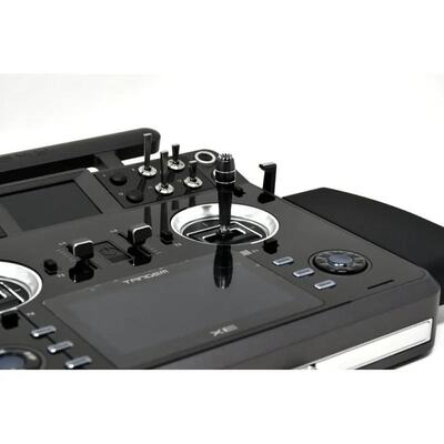 TANDEM XE wurde im Hinblick auf Flexibilität entwickelt. Sie verfügt nicht nur über mehrere Schaltereingangssteckplätze zur weiteren Erweiterung der Steuerungsanforderungen, sondern profitiert auch von anpassbaren Schalterblöcken, die auch durch alternative Blöcke mit mehr Eingangssteckplätzen ersetzt werden können. Zusätzliche Konstruktionsmerkmale wurden hinzugefügt, um den Anforderungen breiterer RC-Benutzergemeinschaften gerecht zu werden. Beispielsweise kann die Steuerung der Vorwärts- und Rückwärtsbewegung von RC-Crawlern erreicht werden, indem die seitlichen CNC-Metallhebel mit dem optionalen selbstzentrierenden Zubehör angepasst werden. Ebenso bietet die Verwendung der optionalen 3-Achsen-Extender, die an den Gimbals montiert sind, viele Möglichkeiten beim Einsatz mit RC-Bodenfahrzeugen. Das XE verfügt über einen faltbaren Ständer/Rahmen, der einfach in den Boden des Funkgerätgehäuses eingeklappt werden kann, und sein Design bietet auch eine gute Lösung zum Anbringen des Sendergurts.