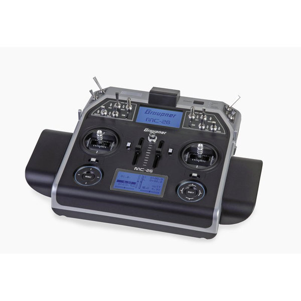 Die Graupner Fernsteuerung mc-26 HoTT ist das Modell für den fortgeschrittenen Modellsportler. Die mc-26 eignet sich für nahezu alle Modelle. 16 Steuerfunktionen, 120 interne Modellspeicher, integrierte Telemetrie und Sprachausgabe sowie die schnelle und sichere bi-direktionale Übertragung der Graupner HoTT 2,4 GHz Technologie, machen die mc-26 zu einem wahren Allrounder.