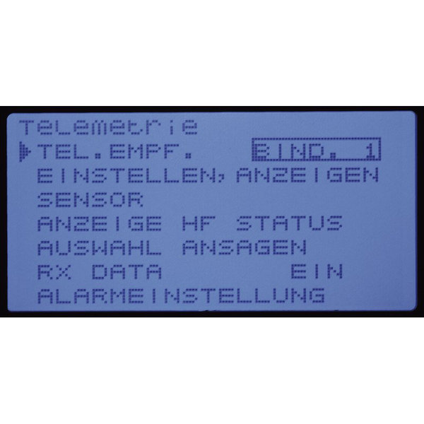 - Zahlreiche Telemetrie-, Programmier- und Auswertefunktionen direkt im Senderdisplay
