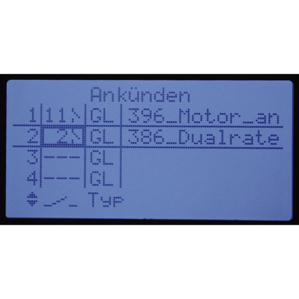 Die Schalter und Taster der Fernsteuerung lassen sich frei zuordnen und somit individuell anpassen. Für die Programmierung stehen 12 Mixer zur Verfügung. 8 Schaltphasen-Programme mit Ansagefunktion lassen sich für jedes Modell anpassen und benennen.