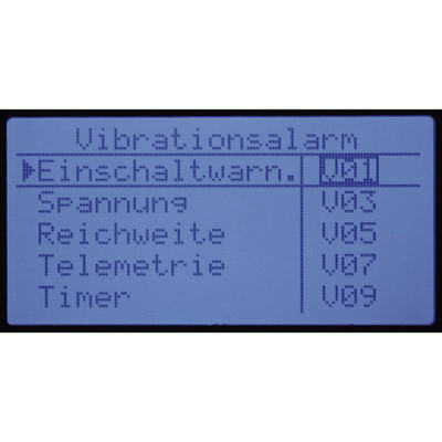- 10 verschiedene Vibrationsalarme für Telemetriewarnungen, Timer, RF Signal, Spannungsalarm