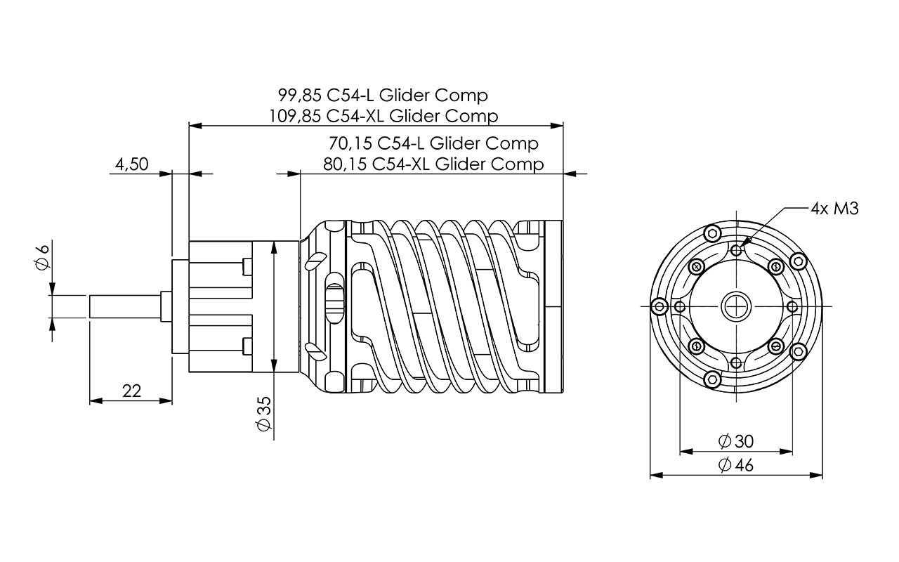 • Befestigung: 4xM3 (Lochkreis-Ø 30mm)