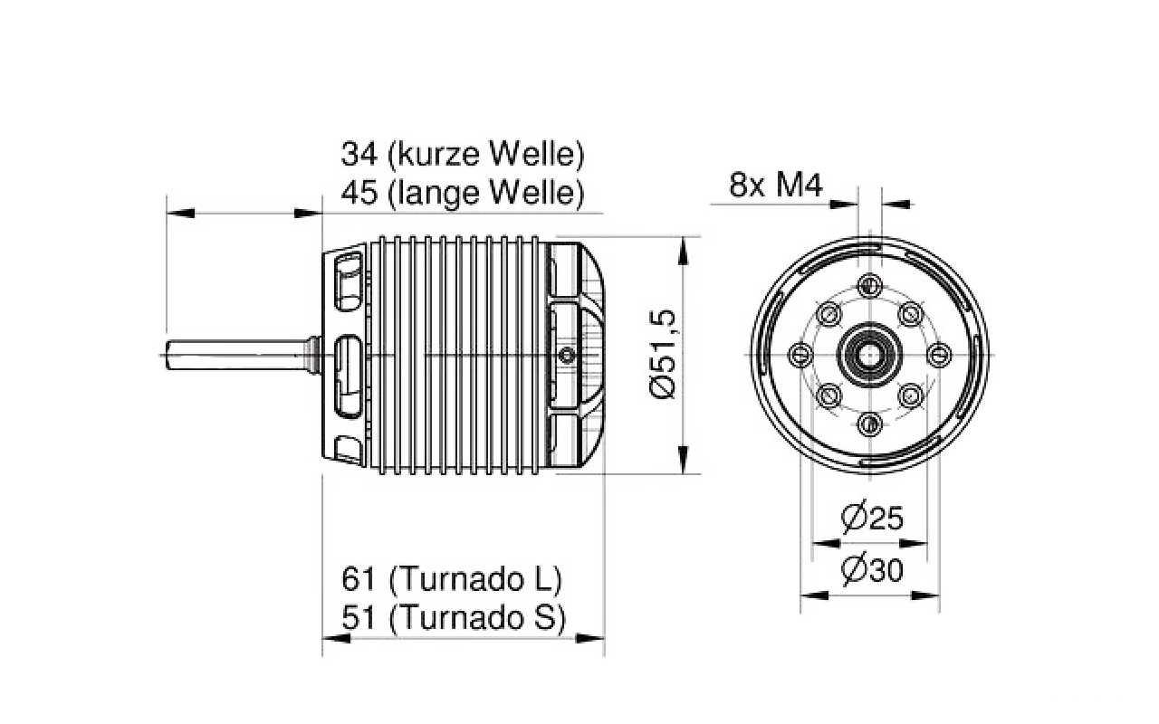 Außenläufer-Elektromotor A50-10L Turnado V4 kv530