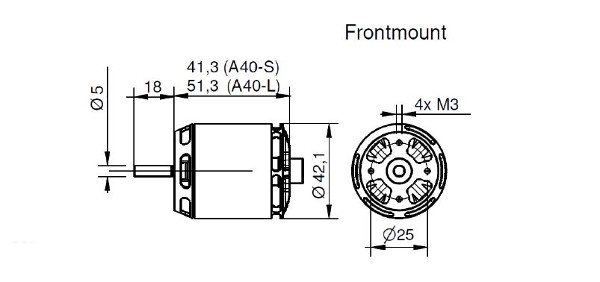 - Befestigung: Front: 4xM3 (Lochkreis-Ø 25mm)