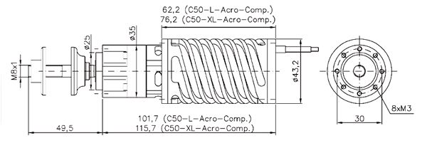 - Befestigung: 8xM3 (Lochkreis-Ø 30mm)