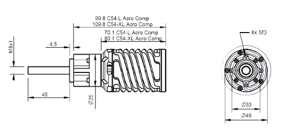 - Befestigung: 4xM3 (Lochkreis-Ø 30mm)