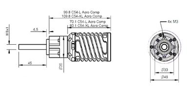 Hier der C54-2Y XL Acro 6,7-1 Competition als kompakter 4-poliger Innenläufer-Motor mit 6,7:1-Untersetzungsgetriebe und 8mm-Welle.