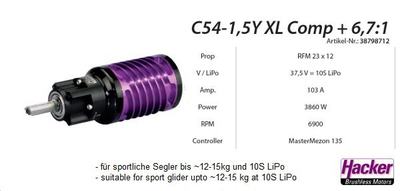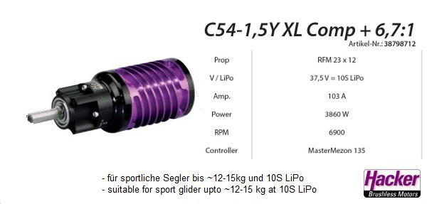 Brushless Getriebe Motor C54-1,5Y XL Glider 6,7:1 Competition Kv 1450