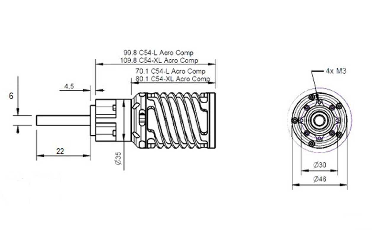 Die Hacker C54-Motoren sind kompakte 4-polige Innenläufer-Motoren mit 6,7:1-Untersetzungsgetriebe und 6-Millimeter-Welle. In der Competition-Version ist das der stärkste Innenläuferantrieb mit hohem Wirkungsgrad bei sehr geringem Gewicht. Die C54-Getriebe-Motoren sind in zwei Baulängen und als Glider- oder Acro-Version erhältlich.