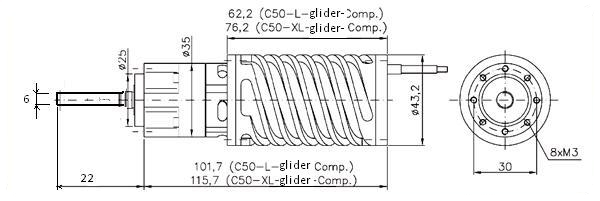 - Befestigung: 8xM3 (Lochkreis-Ø 30mm)