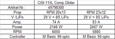 Brushless Getriebe Motor C50-11 XL + 6,7:1 Glider Competition Kv 1476
