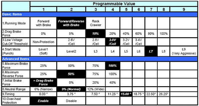 • Betriebsmodus (nur vorwärts, vorwärts-rückwärts, Rock Crawler Mode)