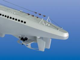 Wer das Modell fahr- und tauchfähig machen möchte benötigt hierzu nach das Antriebs- und Tauch-Kit. Allerdings müssen dabei größere Tiefenruder verwendet werden, als die maßstabsgetreuen des Standmodells. Ein nachträglicher Umbau vom Standmodell zum tauchfähigen Modell ist nicht möglich.