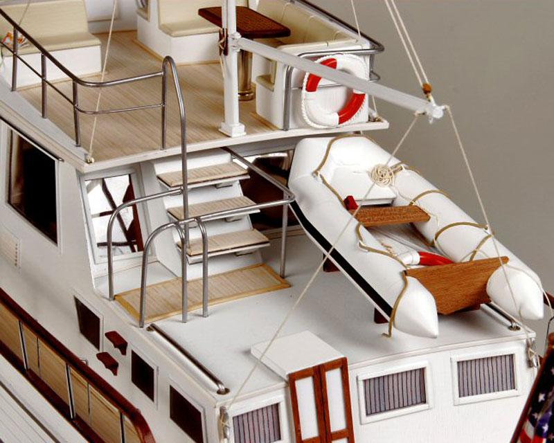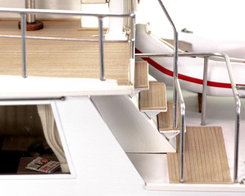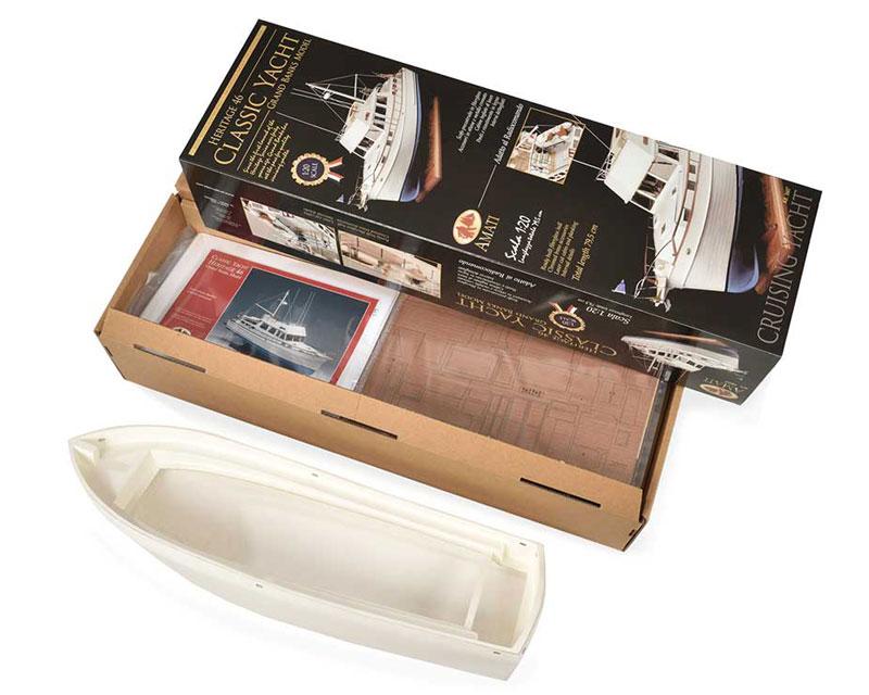 Der Baukasten basiert auf einem neuen Fertigrumpf, der keine weiteren Streben zur Verstärkung braucht. Die Decks und Aufbauten sind lasergeschnittenen, viele Beschläge aus Metall geätzt oder aus Messing. Das komplette Interieur kann nachgebaut werden. Das Modell kann natürlich motorisiert und mit einer Fernsteuerung ausgestattet werden. Hierzu ist der Aufbau komplett abnehmbar konzipiert.