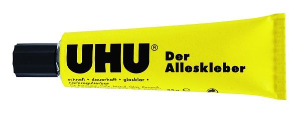 UHU Der Alleskleber ist der bewährte flüssige Kunstharzklebstoff für schnelle und glasklare Klebungen im Haushalt, Büro, beim Modellbau, Basteln usw. UHU Der Alleskleber klebt schnell und dauerhaft viele Materialien. Die Klebeverbindung bleibt kurzfristig nachregulierbar. Keine Papierwellung.