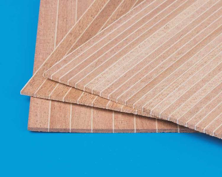 Diese Echtholz-Bretter sind durchgängig aus einzelnen Holzschichten unterschiedlicher Färbung zusammengeleimt und verschliffen. Dies eignet sich besonders gut für vorbildgetreue und optisch reizvolle Bootsdecks. Jedes Brett hat auf einer Seite die entsprechende schmale Schicht, damit ohne Problem das nächste Brett angesetzt werden kann, wenn breitere Decks benötigt werden.