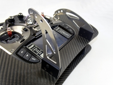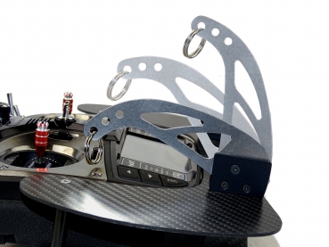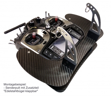 Dennoch lässt sich, durch die Klappfunktion der Aufhängebügel, dass Senderpult gut in Transportkoffern verstauen.