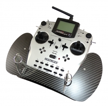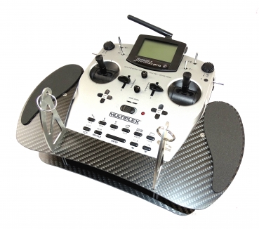 Sehr stabiles Senderpult im modernen Carbon Edelstahl Design. Für alle Multiplex Royal Sender passend.