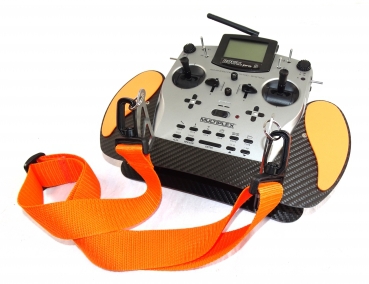 Das Pult ist aus hochwertigem, 2mm dicken Carbon Compositwerkstoff mit stabilen Aufhängebügeln aus Edelstahl woran der Sender optimal getragen werden kann.