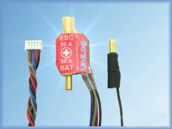 Strom Sensor UniLog 80 A mit 3,5 mm Goldk. (für Akkus mit Minus = Stecker)