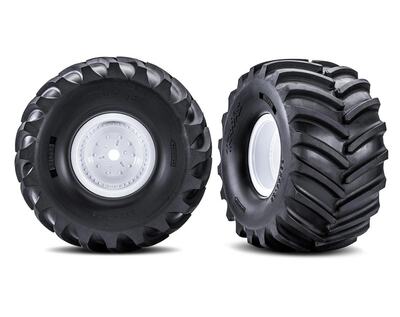 Die neuen Chevron-Profilreifen verleihen dem X-Monster ein agileres Fahrverhalten, verbesserten Grip und noch mehr Kontrolle. Die gewaltigen 8,6-Zoll-Reifen bestehen aus einer ultraweichen Gummimischung für maximale Traktion und sind intern gürtelförmig verstärkt, um das Aufblähen bei hohen Drehzahlen zu verhindern. Die weißen Nachbildungen klassischer Monster-Truck-Felgen mit militärischen Naben runden das authentische Gesamtbild perfekt ab.
