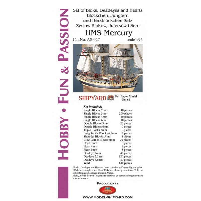Set of blocks, deadeyes and hearts to Nr 35 HMS Mercury