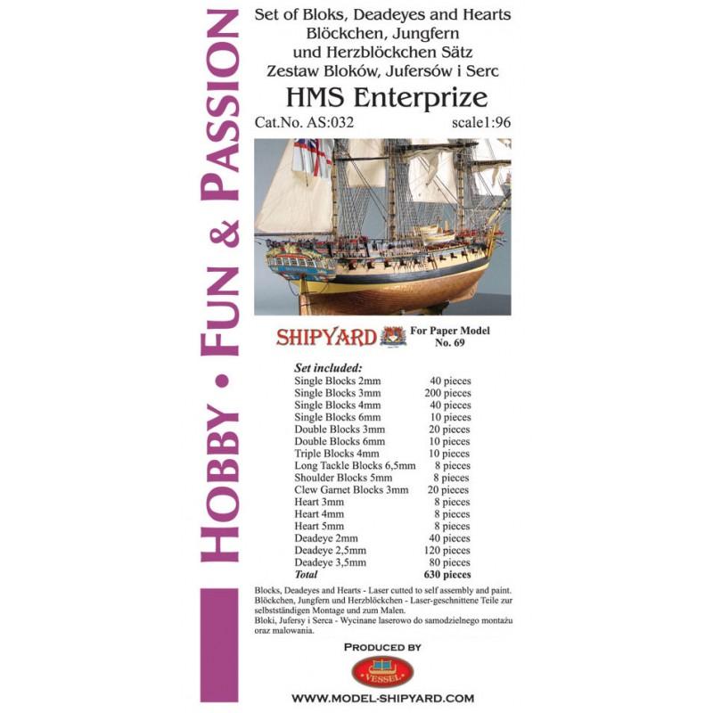 Set of blocks, deadeyes and hearts to Nr 32 HMS Enterprize