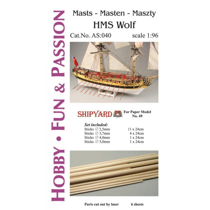 Sticks for making masts and yards + laser cut parts HMS Wolf